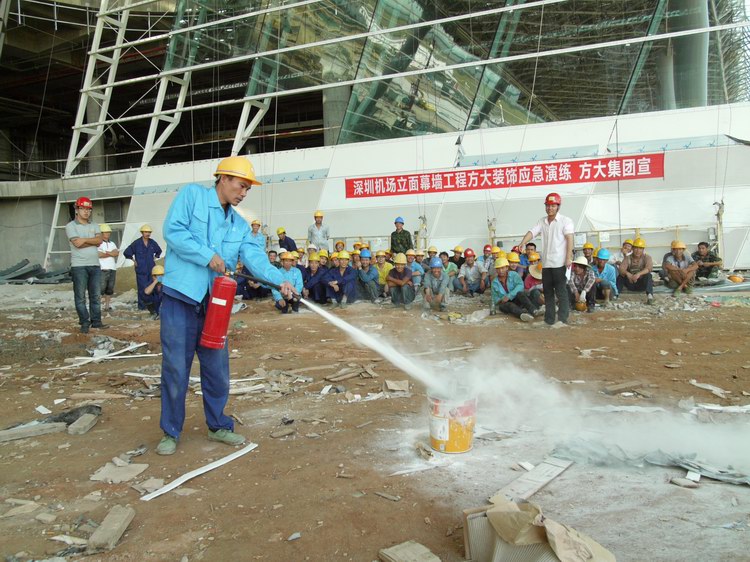 7月3日下午,為了檢驗今年全國“安全生產(chǎn)月”的成果和深圳機場T3航站樓幕墻工程項目的安全生產(chǎn)應急能力,方大集團、深圳市方大裝飾工程有限公司組織開展了為期半天的幕墻施工防火、防高墜、防坍塌安全事故應急演練。集團公司安全主管尚清波、裝飾公司安全部經(jīng)理丁志剛、T3航站樓項目部副經(jīng)理高晶參與現(xiàn)場演練組織指揮。這次安全應急演練,檢驗了現(xiàn)場管理和施工人員面對緊急情況的應急處置能力和水平,提高了大家的安全應急意識和水準,整個演練過程銜接到位,收到了良好的預期效果。