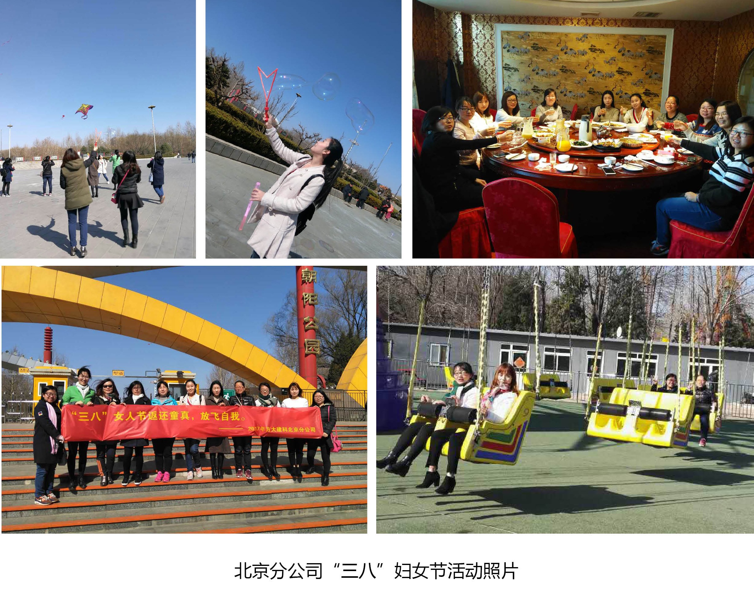 在北京,北京分公司的每位女員工們節(jié)日當(dāng)天一大早就收到了公司精心準(zhǔn)備的一束玫瑰花;中午下班后女員工們?cè)诓妥郎淆R聚一堂,舉杯慶祝,祝愿彼此節(jié)日快樂,共度美好時(shí)光;下午,北京分公司的女員工一同前往朝陽公園踏青游玩,在藍(lán)天白云下,放風(fēng)箏,吹泡泡,在游樂場體驗(yàn)著驚險(xiǎn)刺激的項(xiàng)目,玩的不亦樂乎。