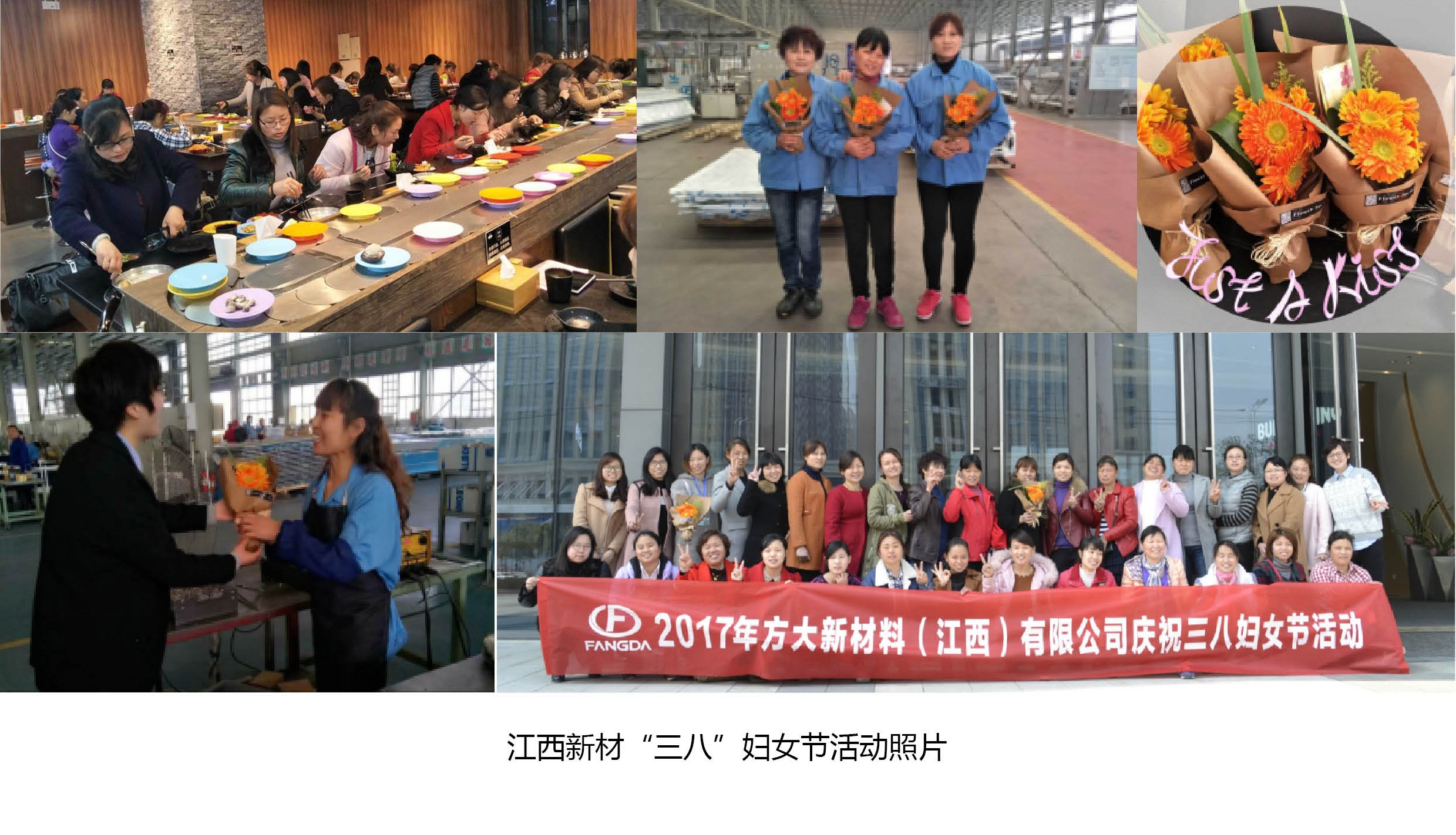 在南昌,江西新材組織了以“愛自己、愛生活”為主題的婦女節(jié)系列活動(dòng),共54名女員工參與其中。活動(dòng)內(nèi)容包括:向女同事送花、合影留念、自助火鍋用餐等。3月8日上午,江西新材行政人事部經(jīng)理吳宇華帶領(lǐng)送花小分隊(duì),向正在崗位上工作的各位女同事遞上一束艷麗的花,表達(dá)公司對(duì)女員工節(jié)日問候。中午時(shí)間,全體女員工在廣場合影留念,隨后前往一回旋自助火鍋店聚餐。江西新材以平凡簡單的方式,贏得了女員工們滿滿的感動(dòng)。女員工們紛紛表示,今年的“三八”婦女節(jié)系列活動(dòng)有驚喜、有創(chuàng)新、更有感動(dòng)。