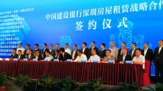 【新華社深圳11月3日電】 3日,建設銀行深圳分行與招商、華潤、萬科、恒大、中海、碧桂園、星河等11家房地產公司,以及比亞迪、方大集團、研祥智能、兆馳等11家企事業單位舉行住房租賃戰略合作簽約儀式,推出5000余套包括“CCB建融家園”在內的長租房源,并發布個人住房租賃貸款產品,標志著建設銀行正式進軍深圳住房租賃市場。
