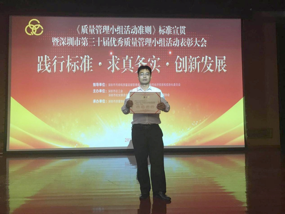 “2017年深圳市優秀QCC成果選拔賽優秀獎”是由深圳市質量協會、深圳市總工會、深圳市婦女聯合會和深圳市科學技術協會聯合審定,旨在表彰在2017年深圳市質量管理小組活動中涌現出的優秀企業、QC小組和個人。