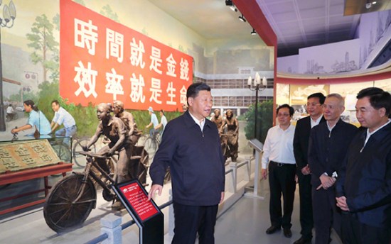 10月24日,中共中央總書(shū)記、國(guó)家主席、中央軍委主席習(xí)近平來(lái)到深圳市福田區(qū),在深圳市當(dāng)代藝術(shù)館與城市規(guī)劃展覽館參觀(guān)了“大潮起珠江——廣東改革開(kāi)放40周年展覽”。隨后又前往深圳前海考察,參觀(guān)了深圳市萬(wàn)科前海企業(yè)公館展覽廳。