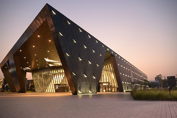 深圳市當(dāng)代藝術(shù)館與城市規(guī)劃展覽館坐落于深圳中心區(qū)中軸線(xiàn)上,是中心區(qū)最后一個(gè)大型公共文化建筑,總建筑面積約8萬(wàn)平方米。作為推廣新銳藝術(shù)、展示城市的新地標(biāo),該建筑以柔和的空間造型和藝術(shù)形象引起了廣泛的關(guān)注。該項(xiàng)目采用了大量的三角形玻璃幕墻及三角形穿孔不銹鋼+玻璃的雙層幕墻,實(shí)現(xiàn)了外立面傾斜、扭曲和旋轉(zhuǎn)的曲面變化,在確保最佳的采光效果同時(shí),兼顧了遮陽(yáng)、亮化等功能性需要,極富想象力和生命力,但也對(duì)幕墻平整度、施工精細(xì)度等帶來(lái)極大的挑戰(zhàn)。方大建科的工匠們,克服了幕墻形式復(fù)雜、材料品種規(guī)格多、施工精度高等種種困難,打造了這座兼具美感和功能性的“表皮”。