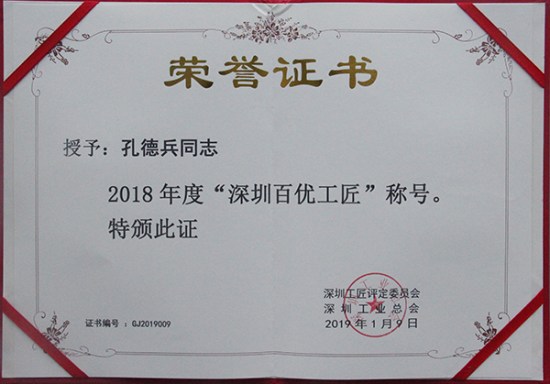 為促進深圳市技能人才隊伍建設,培養深圳工匠群體,弘揚崇尚技能、尊重人才的深圳工匠精神,深圳工業總會組織開展第三屆“深圳百優工匠”評選活動。方大智創科技員工歐陽科華、朱振飛、孔德兵在技術創新、攻克技術難關、傳承傳統工藝等方面做出較大成績,具有良好的職業道德和敬業精神,并在公司里產生良好經濟社會效益和示范作用。他們不僅在企業充分證明了他們的價值,此次獲得的殊榮更表明他們得到行業的尊敬和認可。