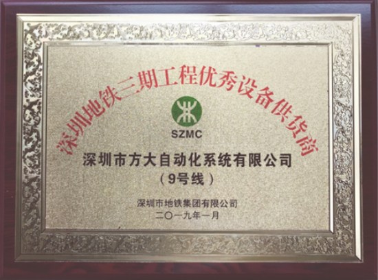 近日,深圳市地鐵集團有限公司召開2018年度參建單位總結表彰大會,對2018年在工程建設中做出突出表現的優秀合作伙伴進行表彰。方大集團全資子公司方大智創科技有限公司獲評“2018年度優秀設備供貨商”和“深圳地鐵三期工程優秀設備供貨商”(9號線)。此次再獲表彰,是深圳市地鐵集團有限公司對方大智創科技軌道交通設備產品品質、服務能力等多方面的充分認可。