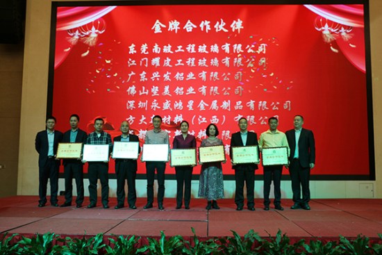 合作伙伴大會(huì)期間對(duì)在過(guò)去一年在與方大建科合作中有突出貢獻(xiàn)的合作伙伴頒發(fā)榮譽(yù)獎(jiǎng)項(xiàng),會(huì)上,方大建科合作進(jìn)步獎(jiǎng)、最佳服務(wù)獎(jiǎng)、卓越品質(zhì)獎(jiǎng)、優(yōu)秀供應(yīng)商、金牌合作伙伴供應(yīng)商五項(xiàng)大獎(jiǎng),東莞南玻工程玻璃有限公司等33家企業(yè)受到榮譽(yù)表彰。