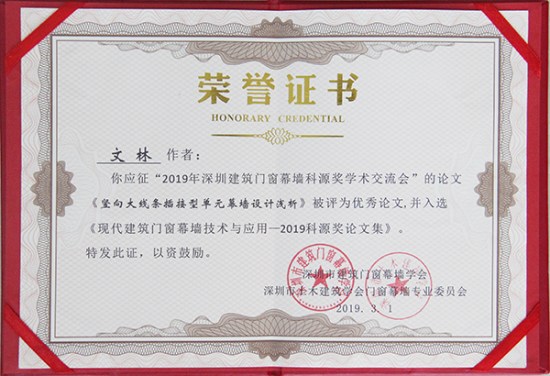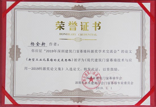 方大建科獲評“2019深圳建筑門窗幕墻行業學術交流先進單位”