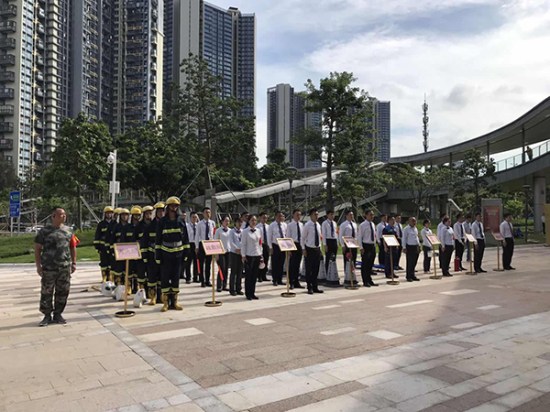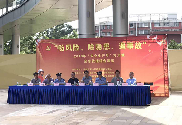 為檢驗深圳方大城安全預警系統有效性,強化業主及物業相關人員安全意識,提升應急避險、自我救護能力,6月27日下午,由深圳市南山區桃源街道辦事處主辦、方大城物業服務中心協辦的“防風險、除隱患、遏事故”應急救援綜合演練在方大城舉行。桃源街道辦主任李海濱,桃源派出所副所長林偉文,方大集團副總裁、置業公司董事長林克檳等參加演練。